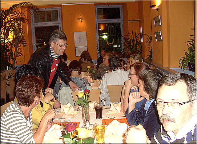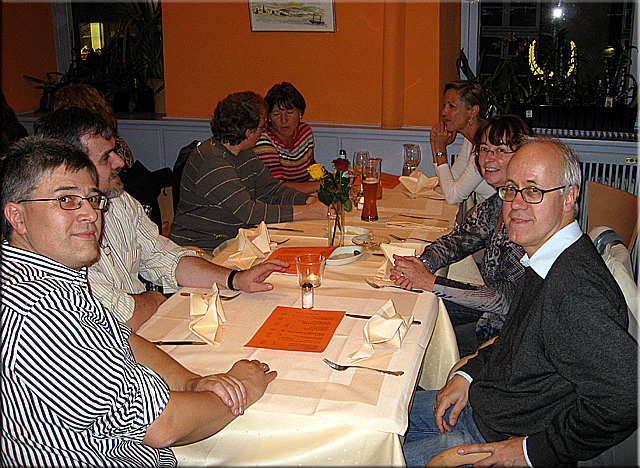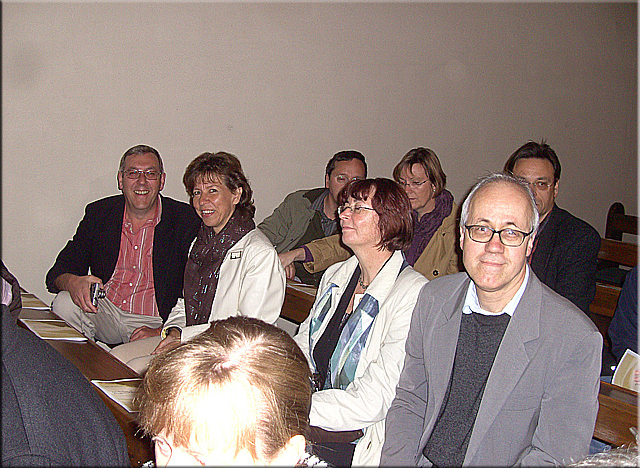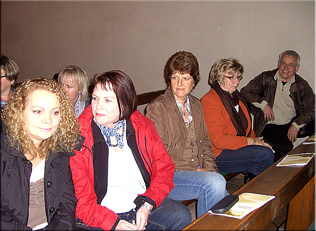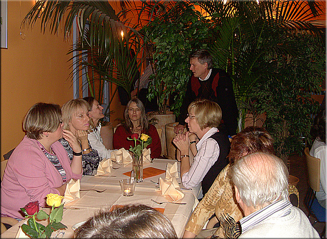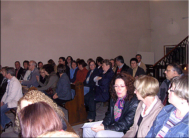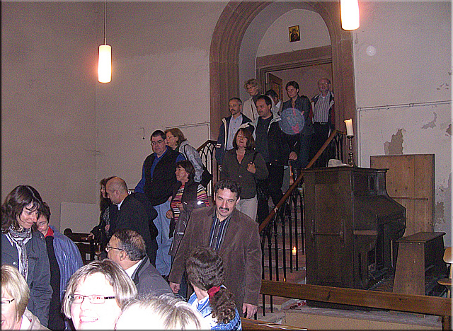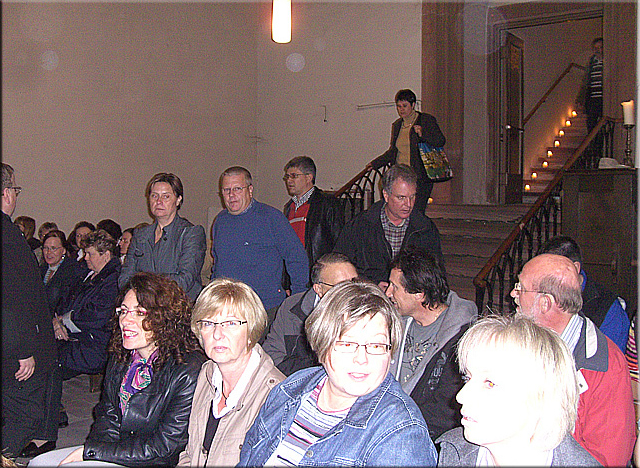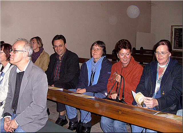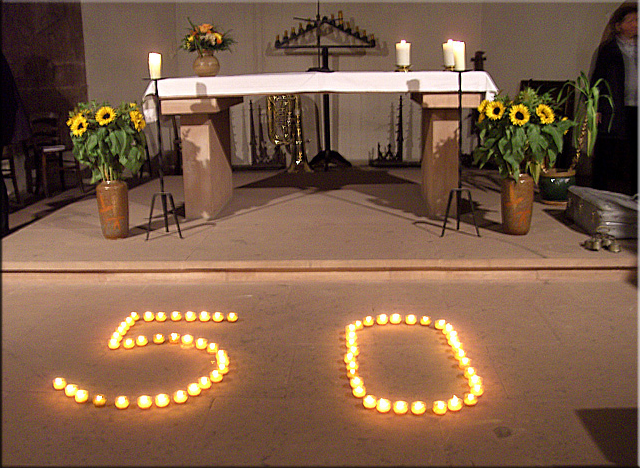 Ein ökumenischer Dankgottesdienst mit Totenehrung fand zu Beginn der dreitägigen Veranstaltung in der Ulnerschen Kapelle statt. Die Predigt hielt Pfarrer Herbert Kumpf, selbst ein 58er, der dem Jahrgang sehr anschaulich die Regieanweisung des Psalms 23 für den Lebensfilm eines jeden Einzelnen aufzeigte. Musikalisch umrahmt wurde die Andacht vom Posaunenchor der Peters- und Johannisgemeinde unter der Leitung von Peter Pflästerer. Anschließend trafen sich die Jahrgangsteilnehmer bei Vino und italienischen Köstlichkeiten zum (Wieder-) Kennenlern-Plausch im "Grünen Baum" und frischten klassen- und schulübergreifend alte Erinnerungen auf.