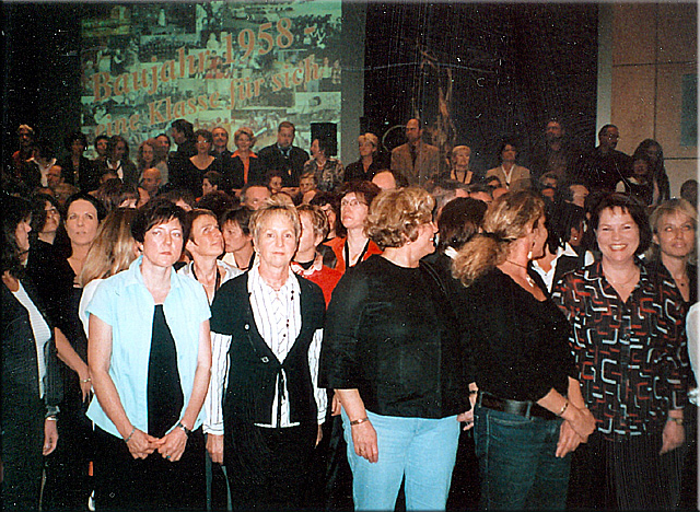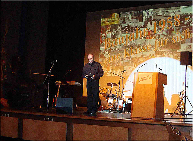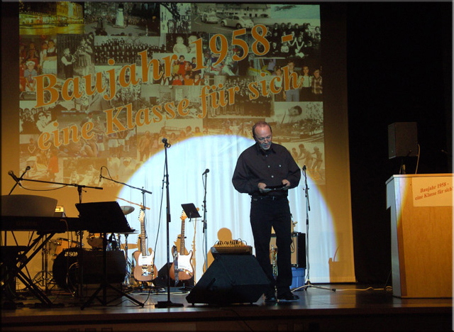Mit fast 400 Besuchern, darunter über 230 Jahrgängler, wurde am Samstagabend in der Stadthalle eine Rekordbeteiligung verzeichnet. Der 58er Manfred Maser eröffnete das Programm und übernahm in gewohnt lockerer, witziger Form die Moderation des Abends. Das Programm bot für jeden etwas. Im Foyer sorgten die an Pinnwänden fixierten Fotos aus alten Zeiten für Unterhaltungsstoff und Schmunzeln. Zu Musik-Hits aus der Teenager-Zeit der 58er, gespielt von Stefanie Riecker und Band, wurde nach dem Ende des offiziellen Programmteils bis in die frühen Morgenstunden getanzt und gegroovt.
