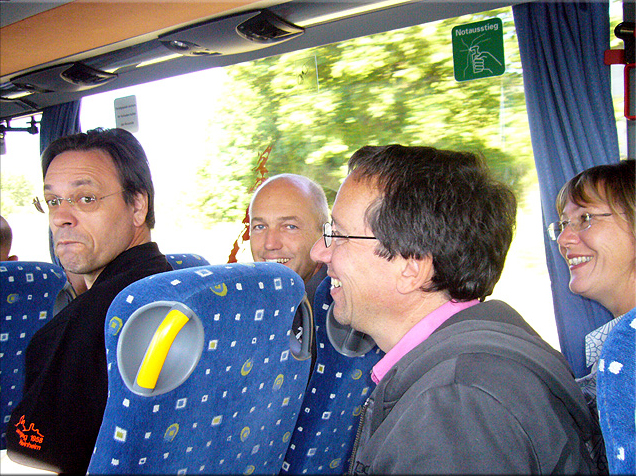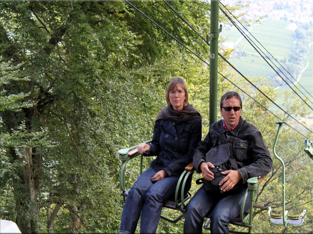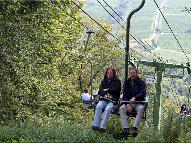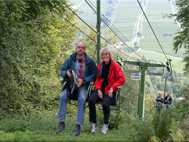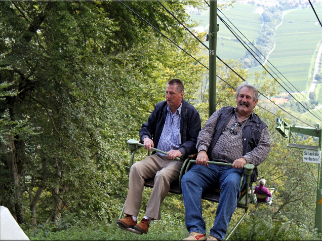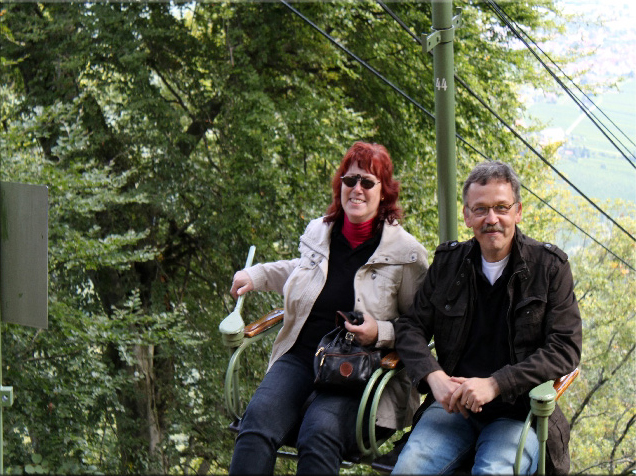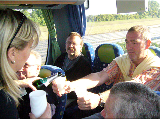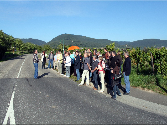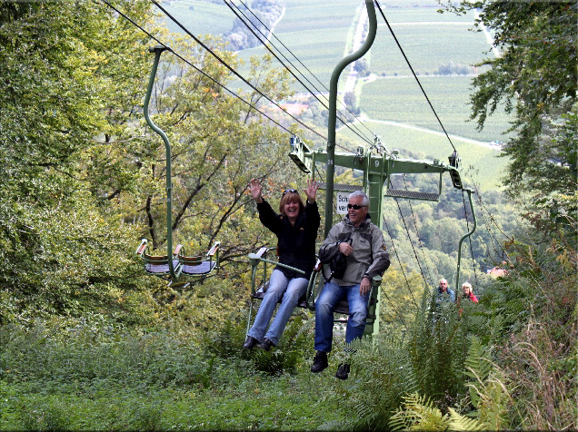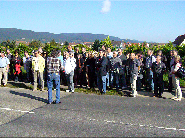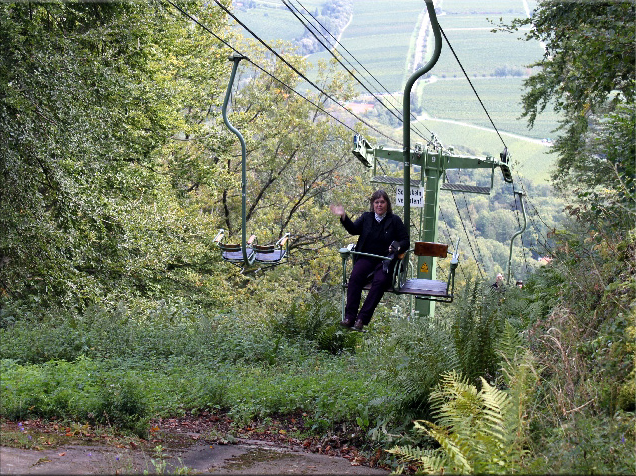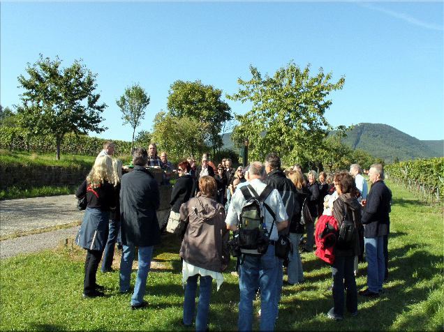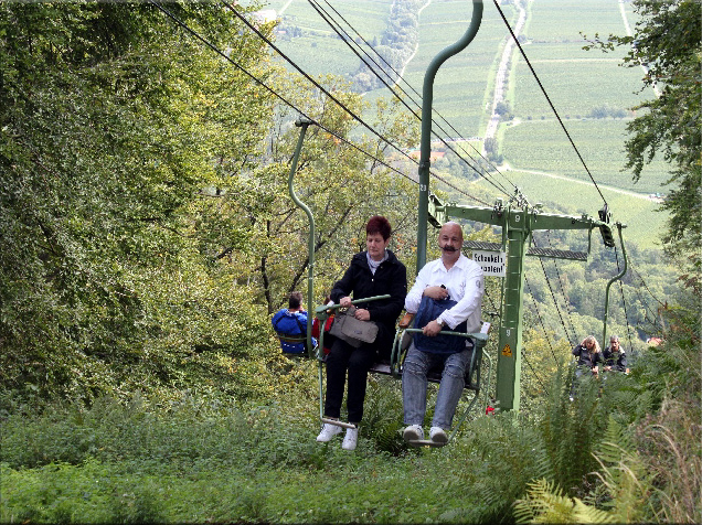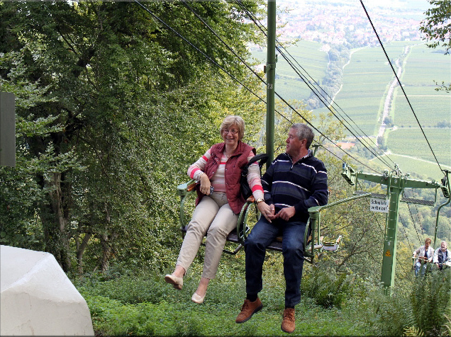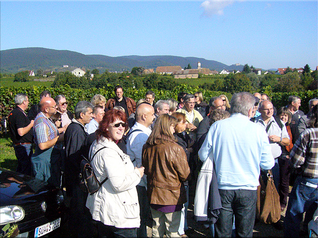 Bei strahlend blauen Himmel fuhren wir, in unserem bis auf den letzten Platz ausgebuchten Reisebus, zuerst nach Edenkoben. Hier nahmen wir an einer Wanderung entlang des Weinlehrpfades teil. Herr Hahn, unser kundiger Führer und ebenfalls Jahrgang 1958, konnte uns hierbei viel Wissenswertes und lustige Anekdoten rund um den Wein erzählen. Ein am Wegrand geparkter "Caddy" war an der Vertiefung des Themas nicht ganz unbeteiligt. Nach unserer kleinen Wanderung, fuhren wir weiter nach Rhodt unter der Rietburg. Hier ging es mit dem Sessellift hinauf zu Höhengaststätte Rietburg zum Mittagessen. Dank des tollen Wetters hatten wir einen wunderschönen Ausblick auf die Rheinebene. Anschließend schwebten wir wieder ins Tal um in Rhodt am "Fest des neuen Weines" teilzunehmen. Biertrinker kamen hier allerdings zu kurz. Es gab nur "Schoppen". Andere Bestellungen, wie z.B. ein Achtel Wein, führten zu verständnislosem Kopfschütteln der einheimischen Bevölkerung. Gegen 18:00 Uhr ging es wieder zurück nach Weinheim, wo wir uns zum Ausklang beim "Alex" einfanden.