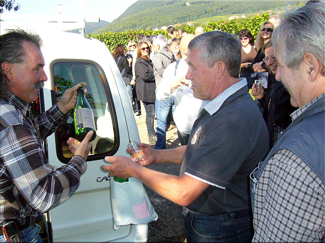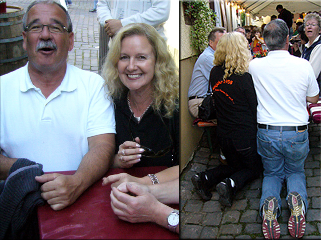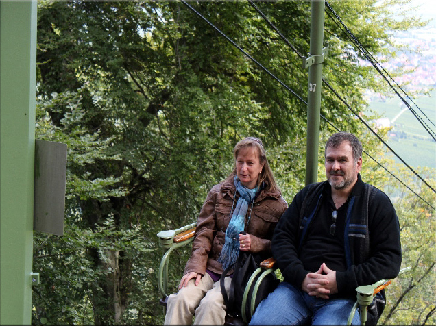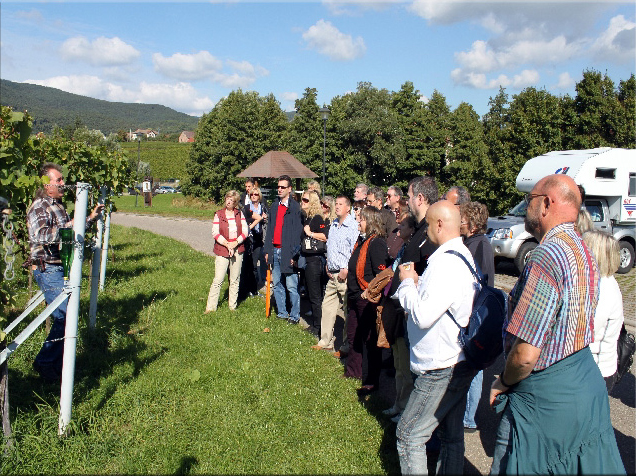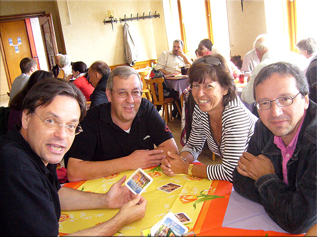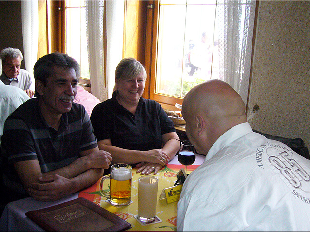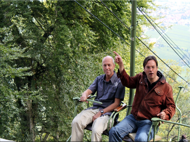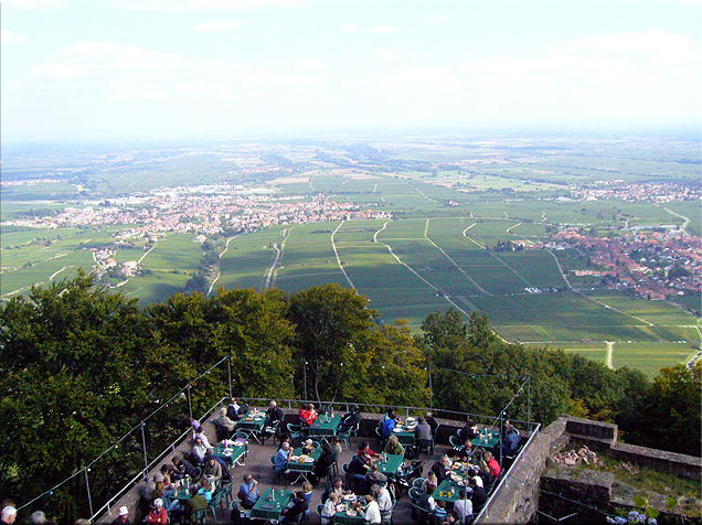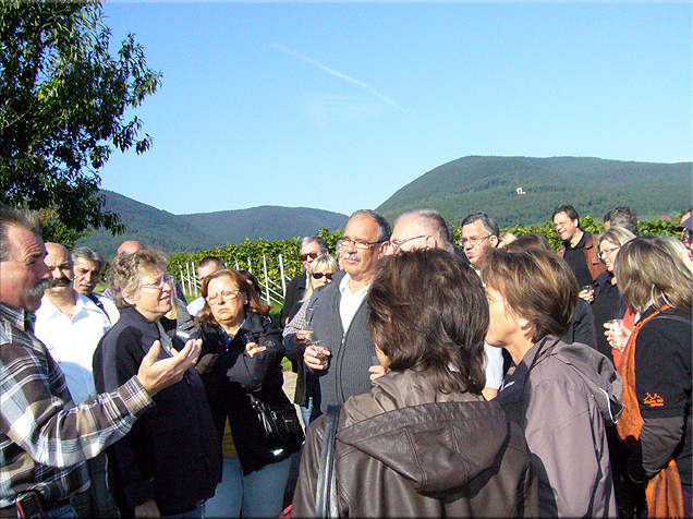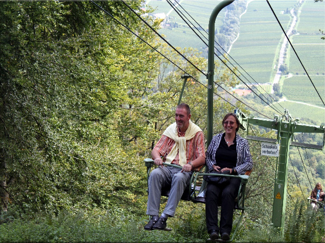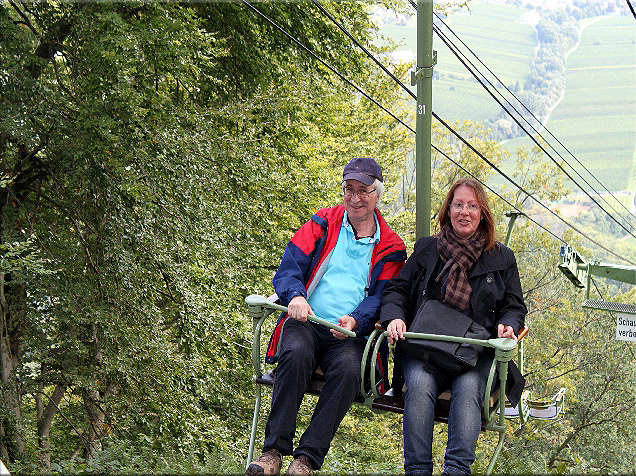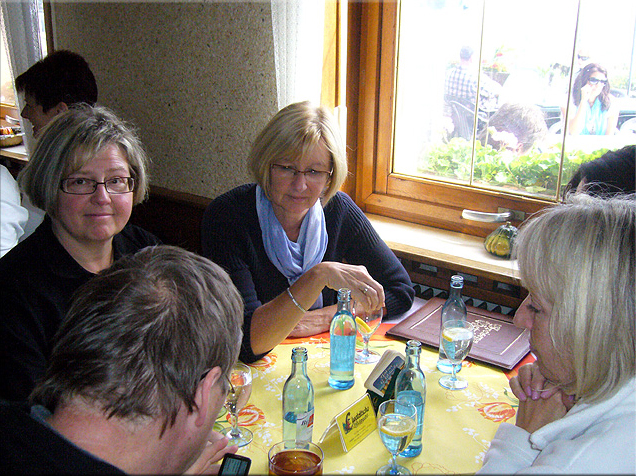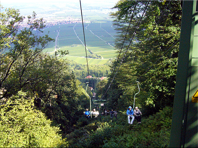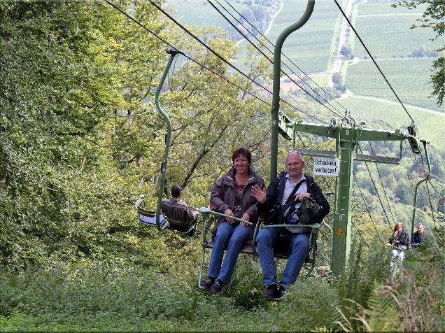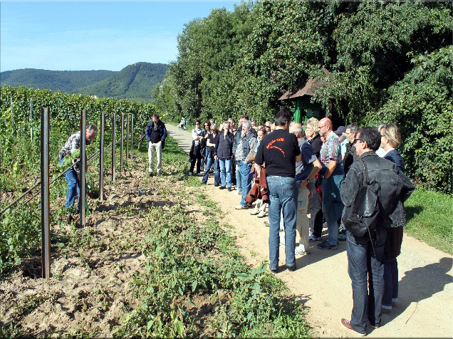 Bei strahlend blauen Himmel fuhren wir, in unserem bis auf den letzten Platz ausgebuchten Reisebus, zuerst nach Edenkoben. Hier nahmen wir an einer Wanderung entlang des Weinlehrpfades teil. Herr Hahn, unser kundiger Führer und ebenfalls Jahrgang 1958, konnte uns hierbei viel Wissenswertes und lustige Anekdoten rund um den Wein erzählen. Ein am Wegrand geparkter "Caddy" war an der Vertiefung des Themas nicht ganz unbeteiligt. Nach unserer kleinen Wanderung, fuhren wir weiter nach Rhodt unter der Rietburg. Hier ging es mit dem Sessellift hinauf zu Höhengaststätte Rietburg zum Mittagessen. Dank des tollen Wetters hatten wir einen wunderschönen Ausblick auf die Rheinebene. Anschließend schwebten wir wieder ins Tal um in Rhodt am "Fest des neuen Weines" teilzunehmen. Biertrinker kamen hier allerdings zu kurz. Es gab nur "Schoppen". Andere Bestellungen, wie z.B. ein Achtel Wein, führten zu verständnislosem Kopfschütteln der einheimischen Bevölkerung. Gegen 18:00 Uhr ging es wieder zurück nach Weinheim, wo wir uns zum Ausklang beim "Alex" einfanden.