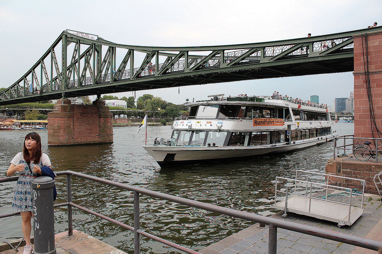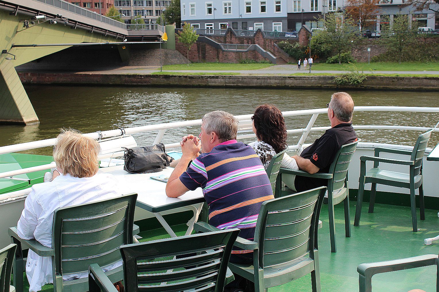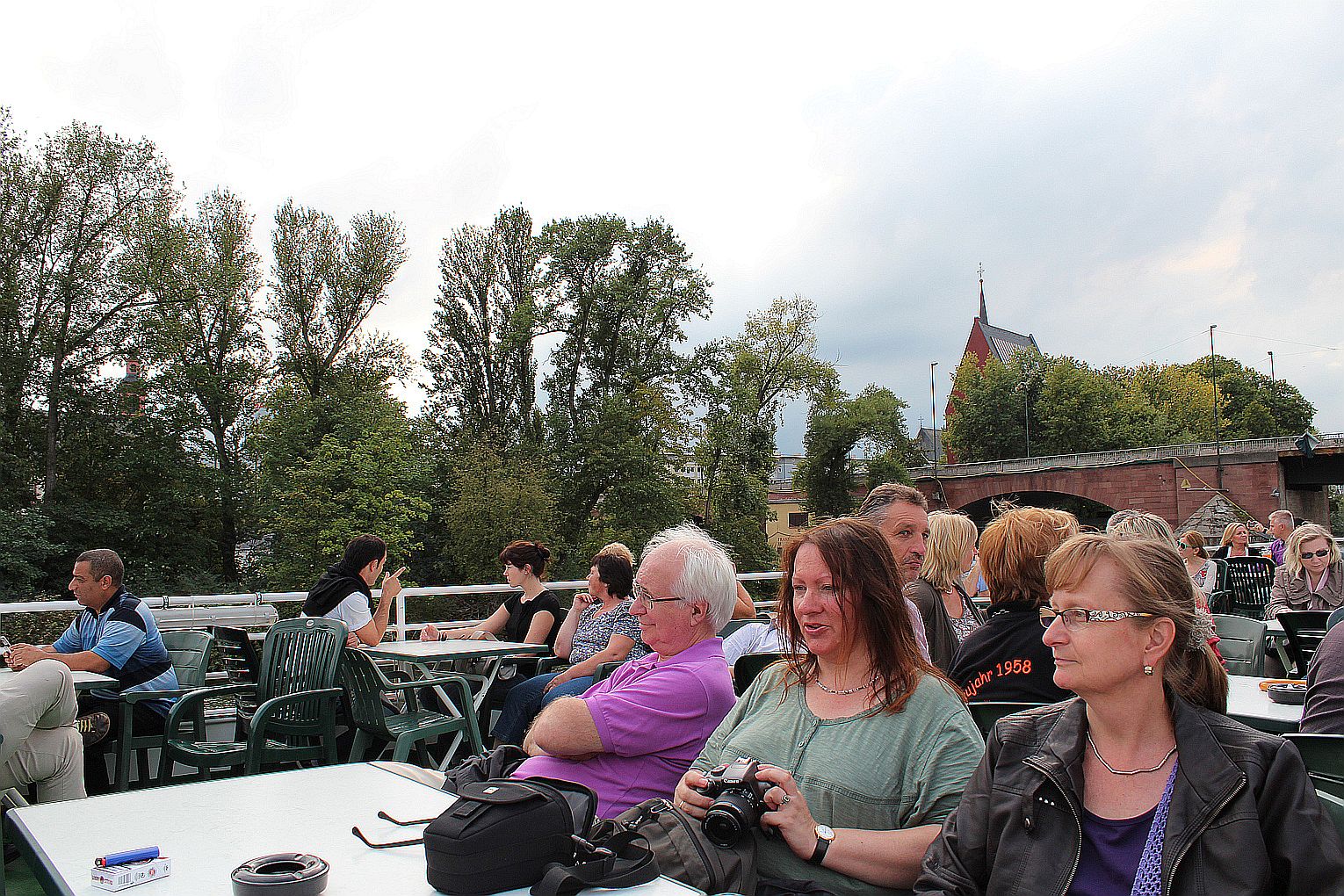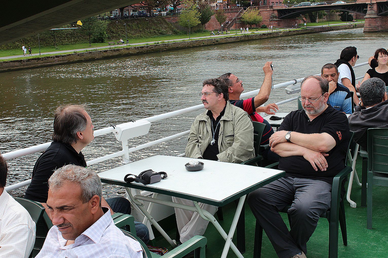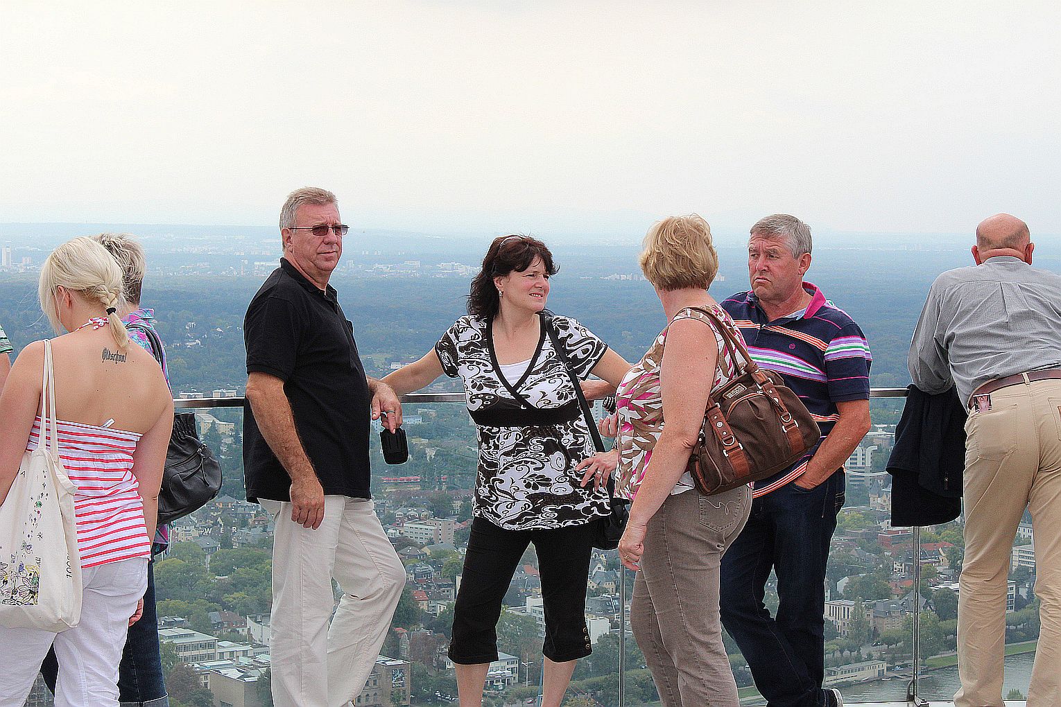 Als erstes stand der Besuch des Maintowers, der 1999 erbaut wurde, auf der Tagesordnung. Von dessen Aussichtsplattform in fast 200 m Höhe bot sich ein grandioser Blick auf die Main-Metropole. Danach ging es weiter zum Römer. Hier traf die Gruppe auf Jahrgangskameradin Karin Ziegler, die maßgeblich für die Organisation vor Ort verantwortlich war. Nach kurzer Stärkung trat man am Eisernen Steg eine Schiffsrundfahrt auf dem Main an und konnten dabei die Skyline Frankfurts aus einer weiteren Perspektive kennen lernen. Den Abschluß bildete ein Besuch einer urigen Äppelwoi-Wirtschaft in Sachsenhausen. Hier konnten die Jahrgängerinnen und Jahrgänger ihr Wissen rund um Frankfurt in Form eines Quiz beweisen. Es gewann Ursel Rotter.