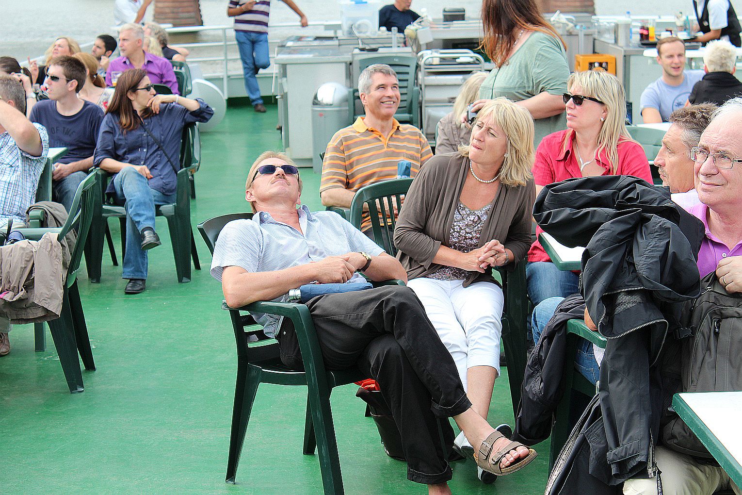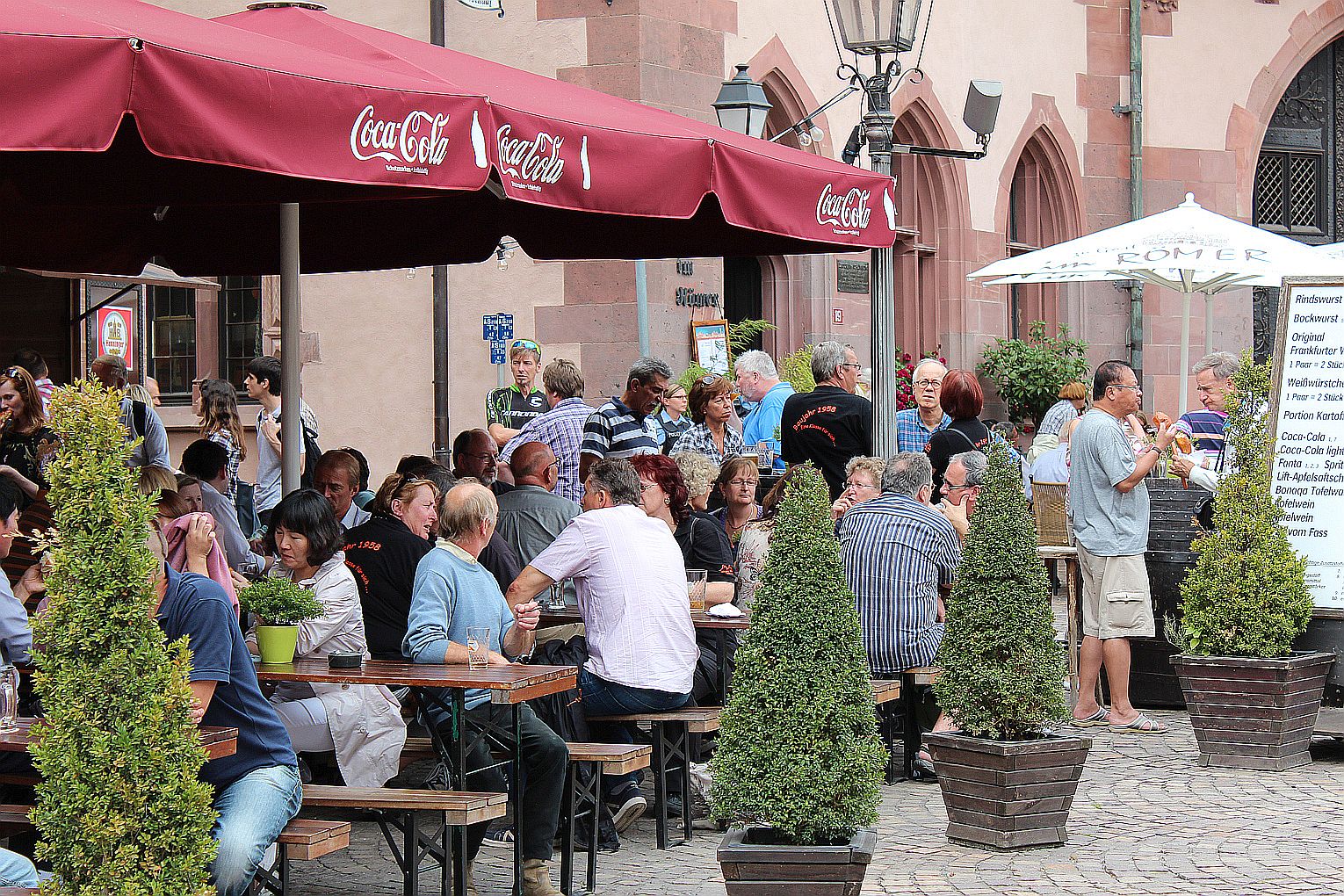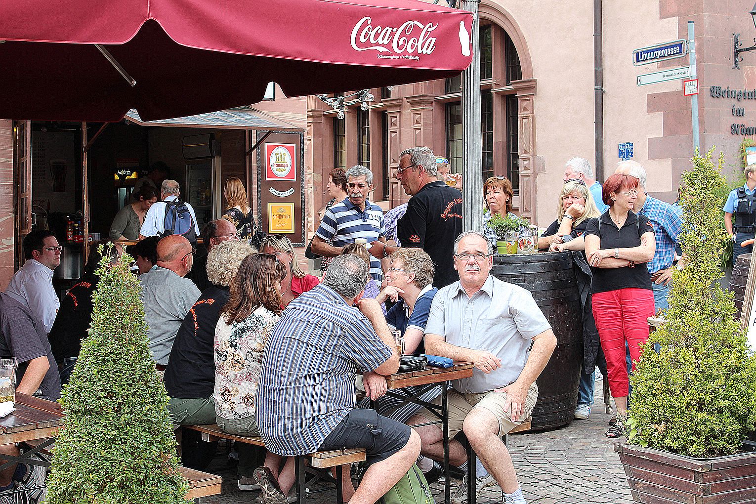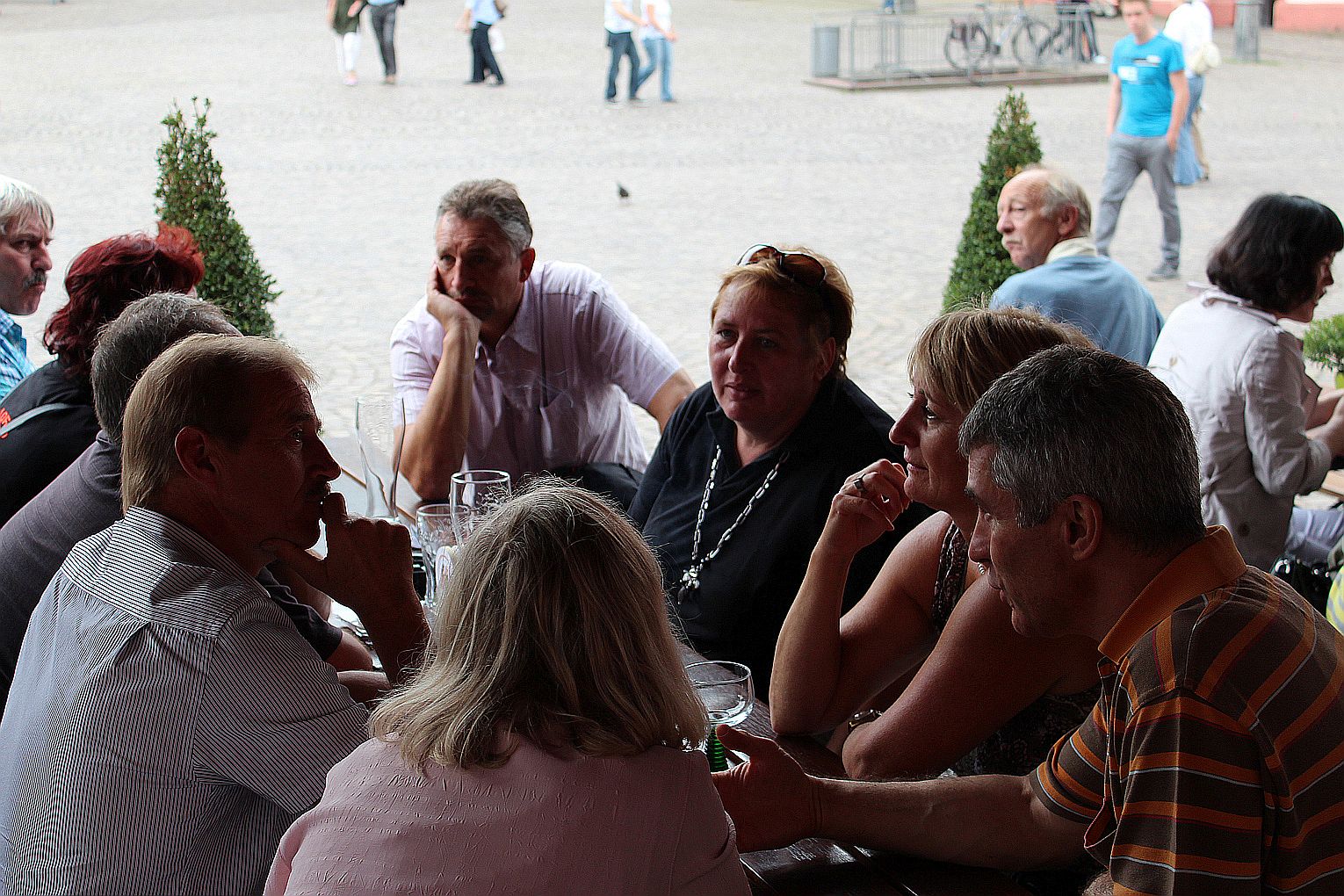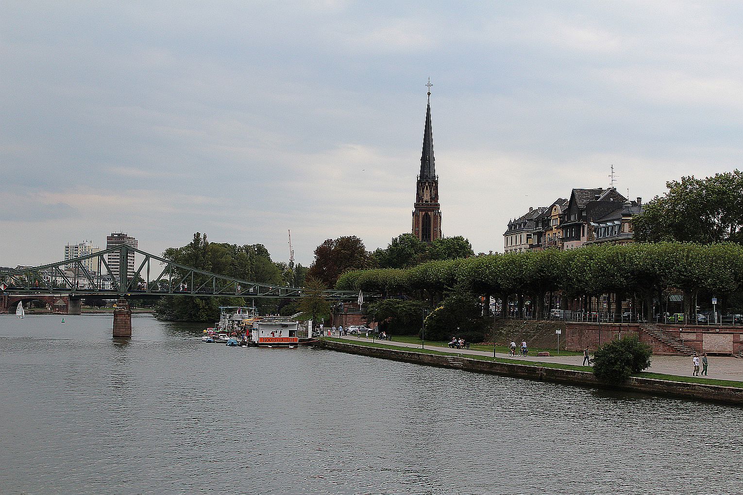 Als erstes stand der Besuch des Maintowers, der 1999 erbaut wurde, auf der Tagesordnung. Von dessen Aussichtsplattform in fast 200 m Höhe bot sich ein grandioser Blick auf die Main-Metropole. Danach ging es weiter zum Römer. Hier traf die Gruppe auf Jahrgangskameradin Karin Ziegler, die maßgeblich für die Organisation vor Ort verantwortlich war. Nach kurzer Stärkung trat man am Eisernen Steg eine Schiffsrundfahrt auf dem Main an und konnten dabei die Skyline Frankfurts aus einer weiteren Perspektive kennen lernen. Den Abschluß bildete ein Besuch einer urigen Äppelwoi-Wirtschaft in Sachsenhausen. Hier konnten die Jahrgängerinnen und Jahrgänger ihr Wissen rund um Frankfurt in Form eines Quiz beweisen. Es gewann Ursel Rotter.