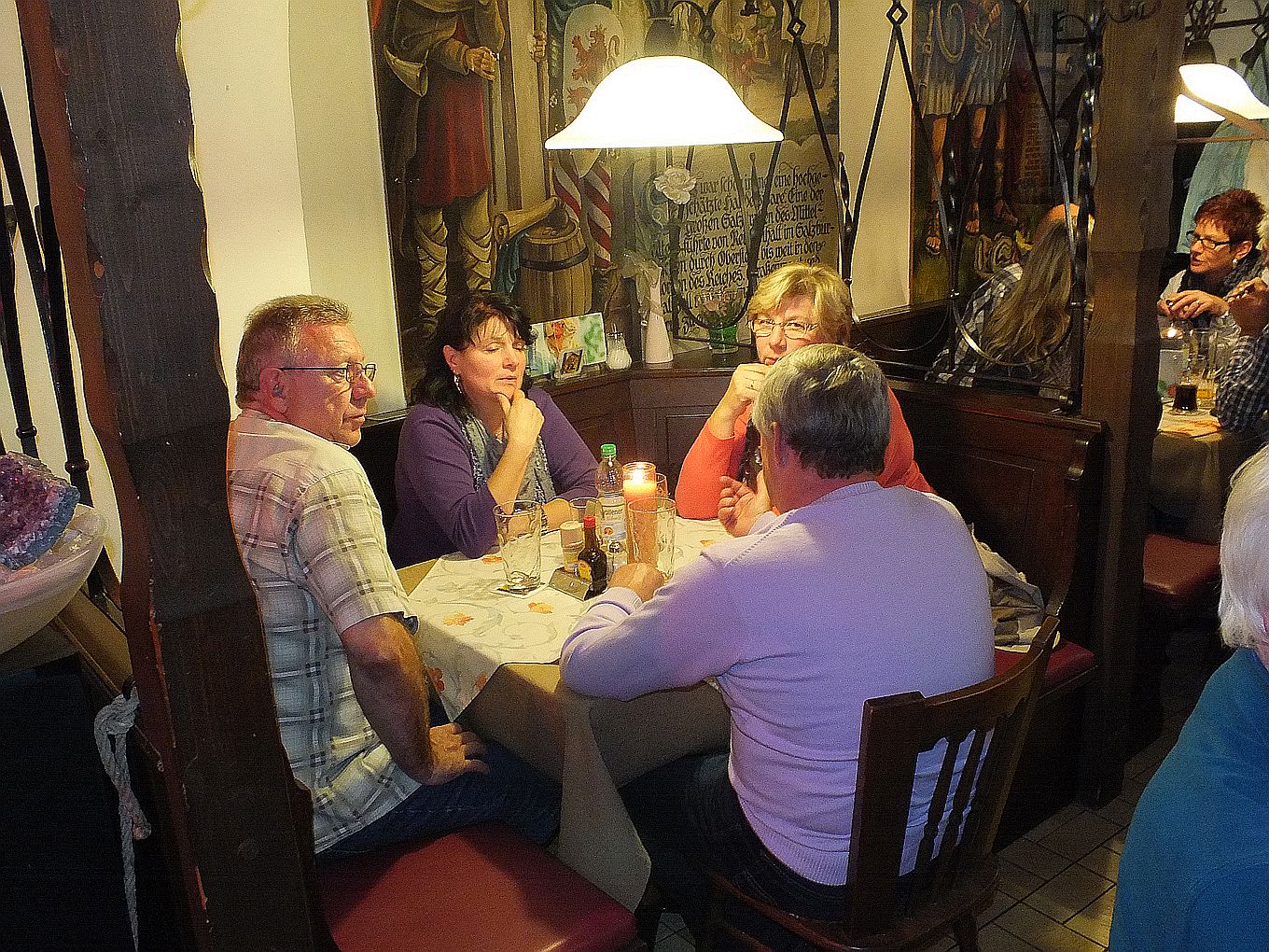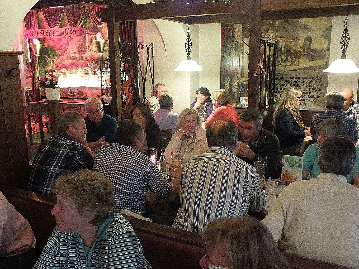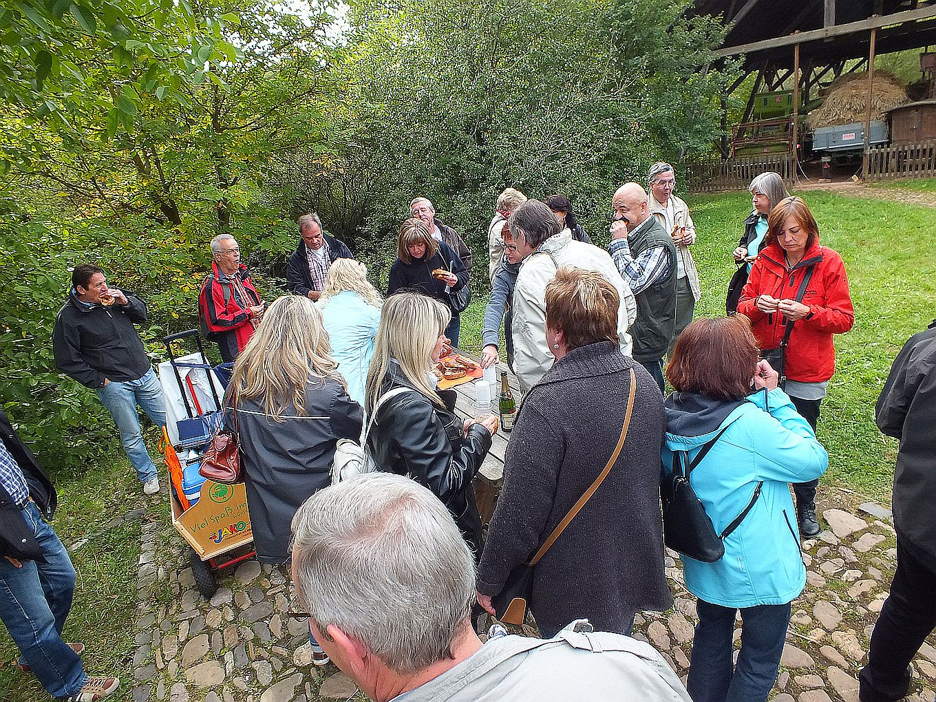 Dieses Mal hatte unser Vergnügungsausschuss um Heide Sommer eine Fahrt ins Freilichtmuseum Bad Sobernheim organisiert. Diese entpuppte sich als eine Reise zurück in die Vergangenheit, die manchen jedoch noch sehr vertraut war. Nach mehrstündiger Exkursion und Besuchs des Museums eigenen Souvenir-Shops, wo unter anderen Schiffertafeln, Griffel und Brummkreisel neue Besitzer fanden, fuhren wir weiter in die Schmuck- und Edelsteinstadt Idar-Oberstein. Wo wir, nach einem Bummel durch die verkaufsoffene Fußgängerzone, in der Schloßschänke die kulinarischen Spezialitäten der Region kennen lernen durften. Die anschließende Heimfahrt stellte die Teilnehmer nochmals vor eine größere Herausforderung, mussten Sie doch wieder ein Quiz lösen, welches unser Jahrgangsmitglied Reinhold Albrecht ausgearbeitet hatte.