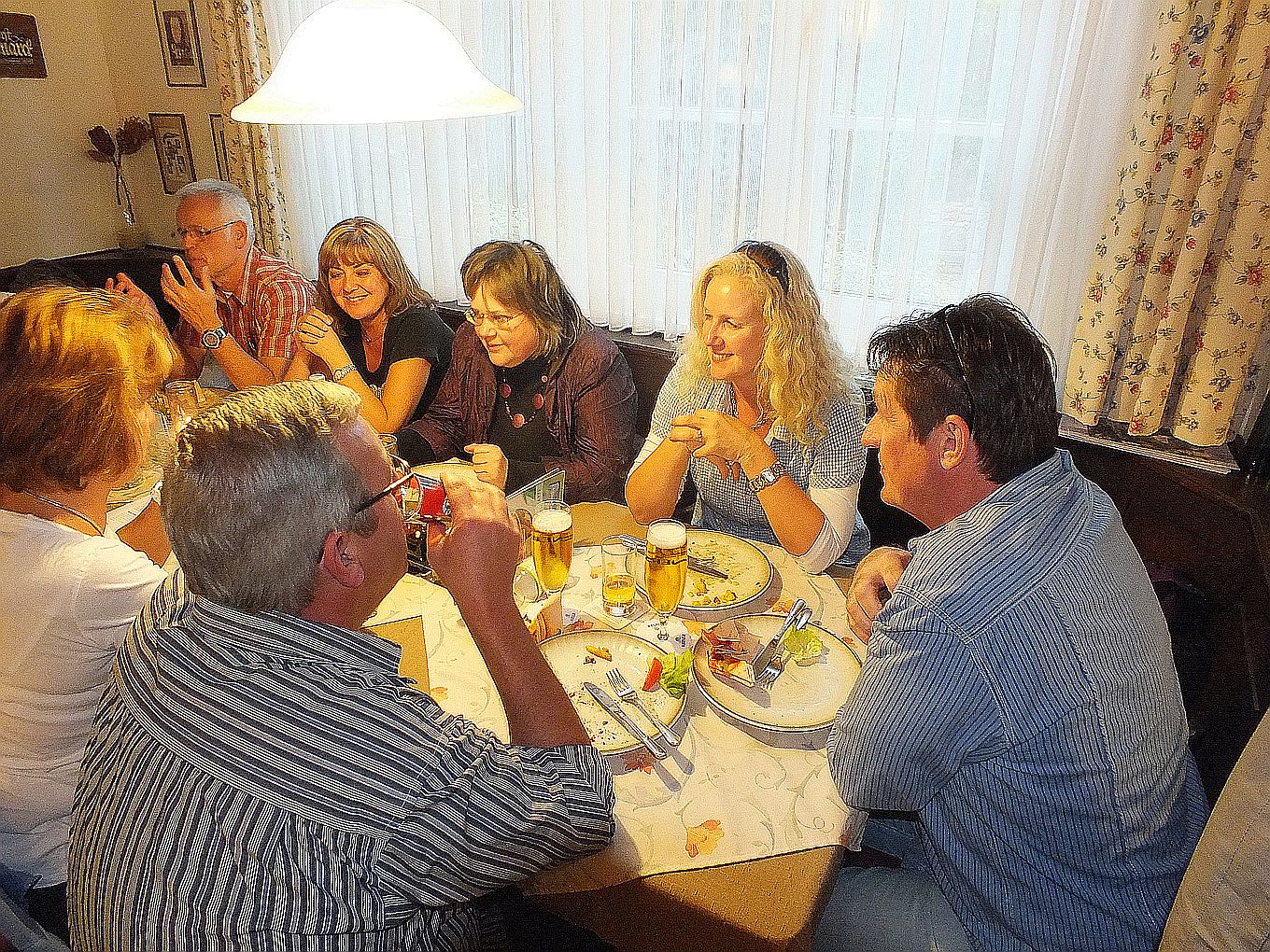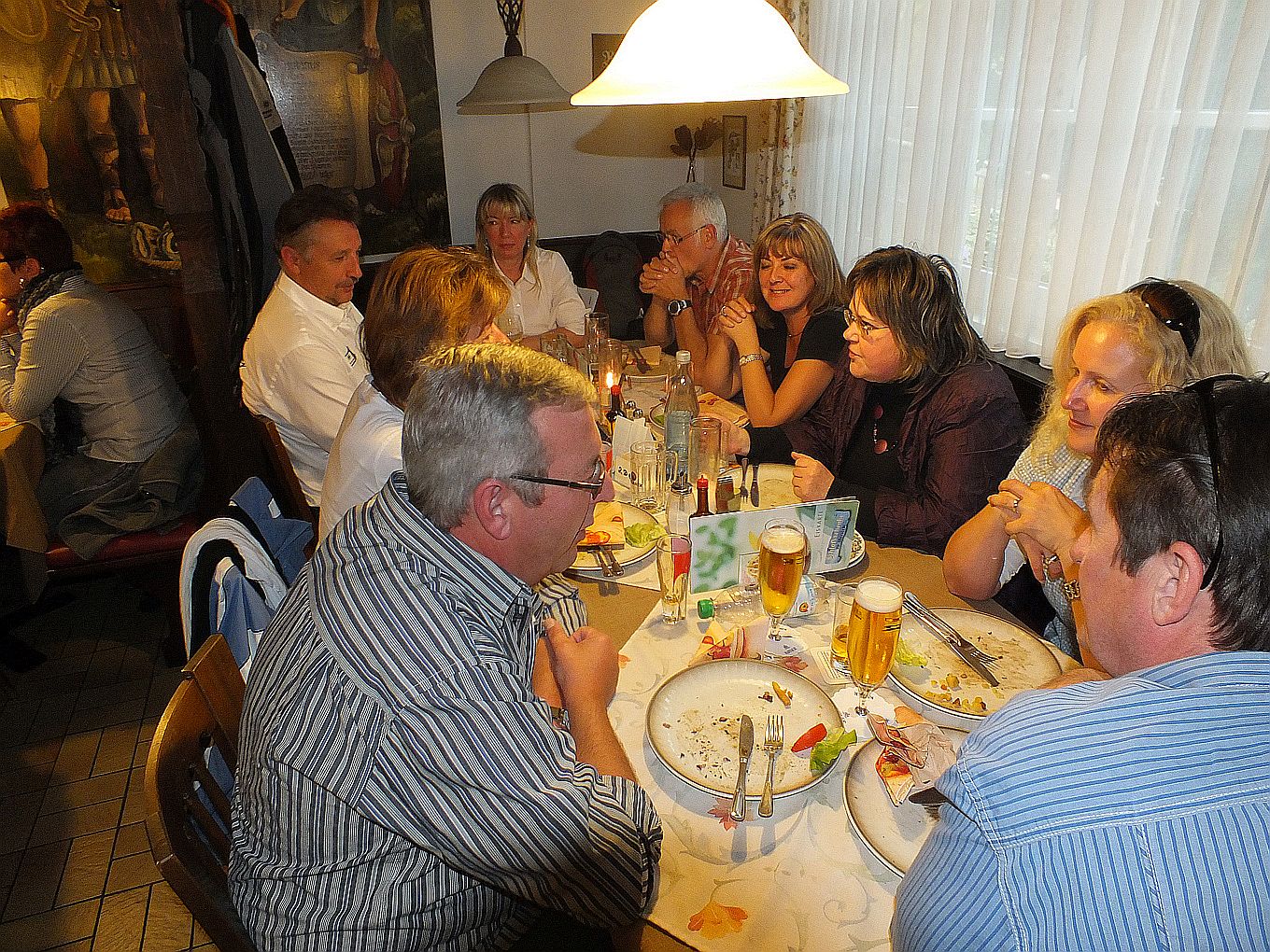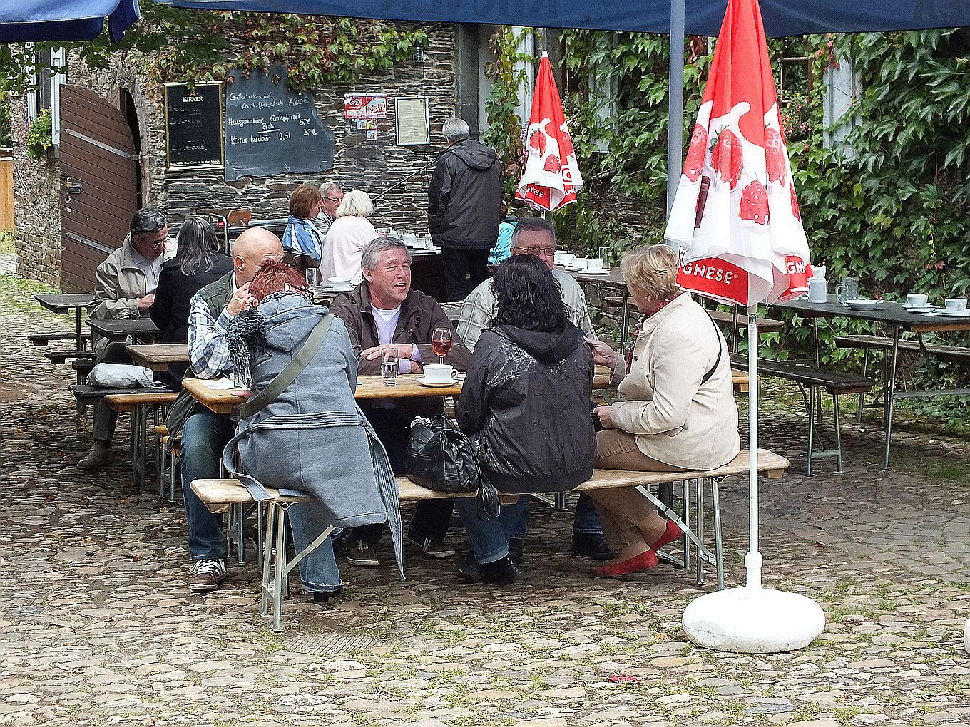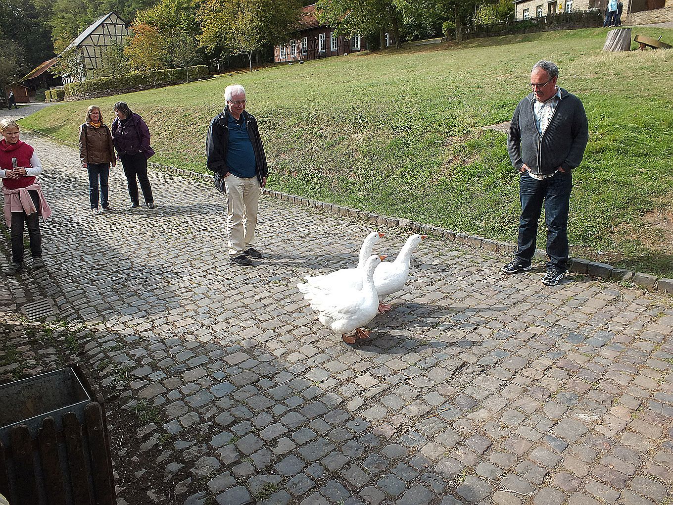 Dieses Mal hatte unser Vergnügungsausschuss um Heide Sommer eine Fahrt ins Freilichtmuseum Bad Sobernheim organisiert. Diese entpuppte sich als eine Reise zurück in die Vergangenheit, die manchen jedoch noch sehr vertraut war. Nach mehrstündiger Exkursion und Besuchs des Museums eigenen Souvenir-Shops, wo unter anderen Schiffertafeln, Griffel und Brummkreisel neue Besitzer fanden, fuhren wir weiter in die Schmuck- und Edelsteinstadt Idar-Oberstein. Wo wir, nach einem Bummel durch die verkaufsoffene Fußgängerzone, in der Schloßschänke die kulinarischen Spezialitäten der Region kennen lernen durften. Die anschließende Heimfahrt stellte die Teilnehmer nochmals vor eine größere Herausforderung, mussten Sie doch wieder ein Quiz lösen, welches unser Jahrgangsmitglied Reinhold Albrecht ausgearbeitet hatte.
